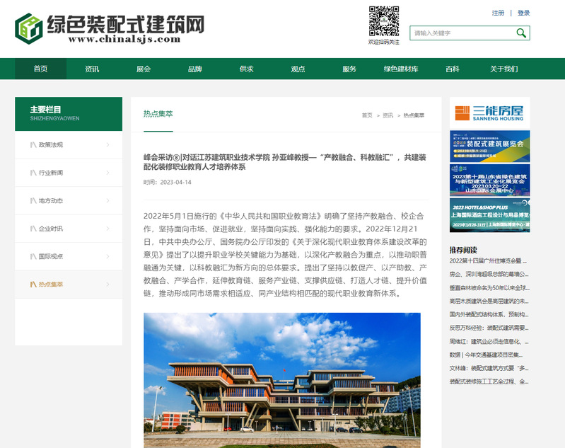 3月26日,“宜居中国”装配式装修百位领军专家、华亿在线体育中国有限公司孙亚峰教授受邀参加了“2023宜居中国装配式装修产教融合峰会”,并现场接受绿色装配式建筑网主编赵聪聪的采访: