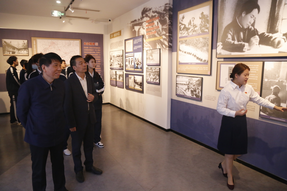 启动仪式后,宋农村一行与我校师生代表前往思想政治教育基地,以“老少同学党的光辉历史”为主题展开了本次教育活动的第一课。基地学习尾声,鲍桂楠和宋农村深入交流,共同向现场学生提出了三点希望:一要深化文化自信,坚定爱国主义信念;二要注重与时俱进,坚持开拓创新;三要提高学习成效,重在服务社会。