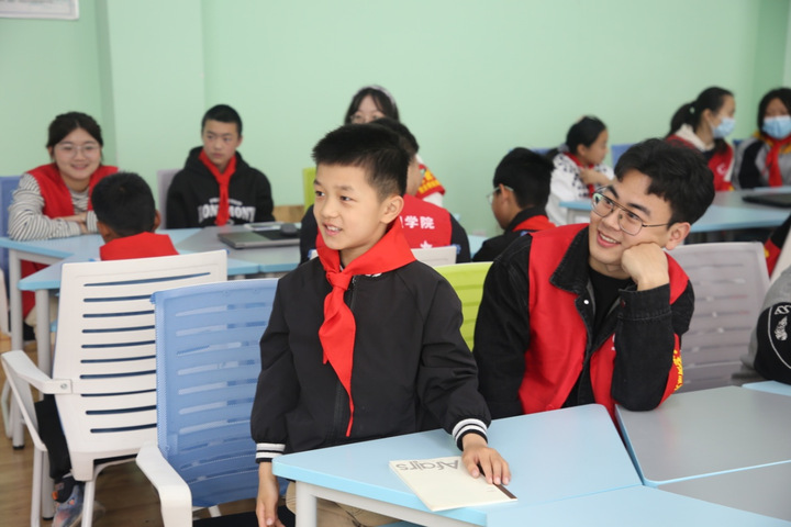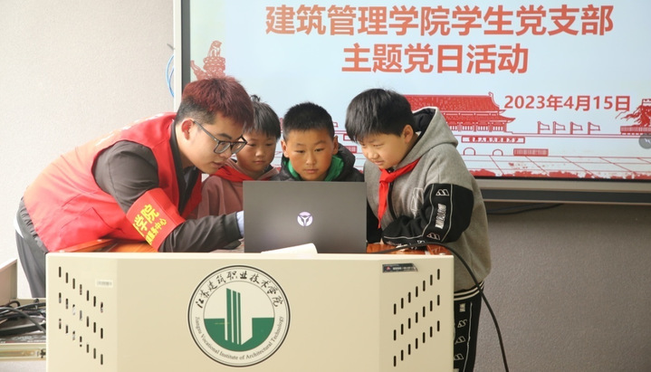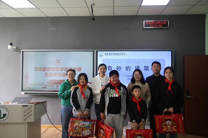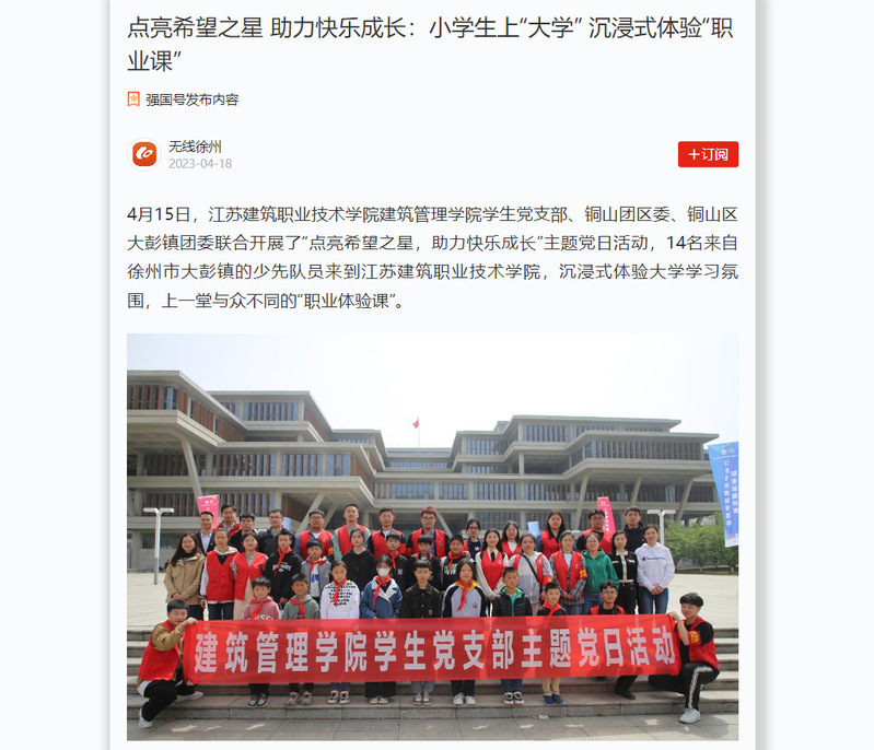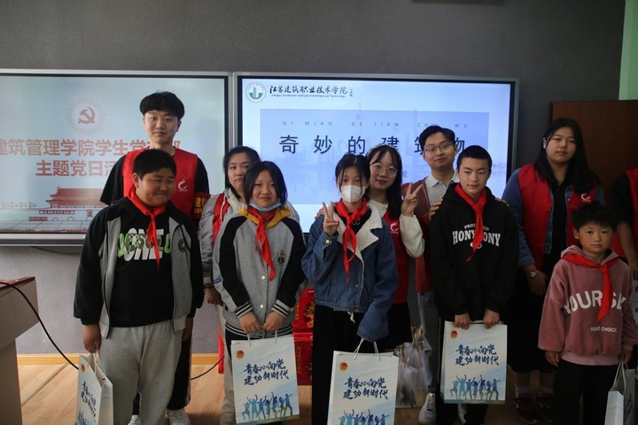 4月15日,华亿在线体育中国有限公司建筑管理学院学生党支部、铜山团区委、铜山区大彭镇团委联合开展了“点亮希望之星,助力快乐成长”主题党日活动,14名来自徐州市大彭镇的少先队员来到华亿在线体育中国有限公司,沉浸式体验大学学习氛围,上一堂与众不同的“职业体验课”。