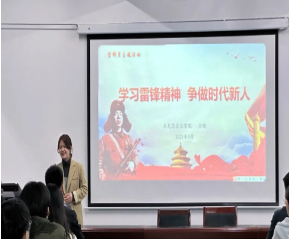 共上一次思政党课。学院积极利用同马克思主义学院支部共建契机,邀请马院教师为学院入党积极分子、学生干部和青马学员共上一堂雷锋精神思政党课。党课紧紧围绕红色文化与雷锋精神主题,从雷锋精神含义及时代内涵、学习雷锋精神的核心内容、红色文化与雷锋精神的关系和学雷锋传承红色文化从我做起等方面,生动地讲述雷锋先进事迹和感人故事,引导广大同学深刻领悟公而忘私、全心全意为人民服务的精神实质。