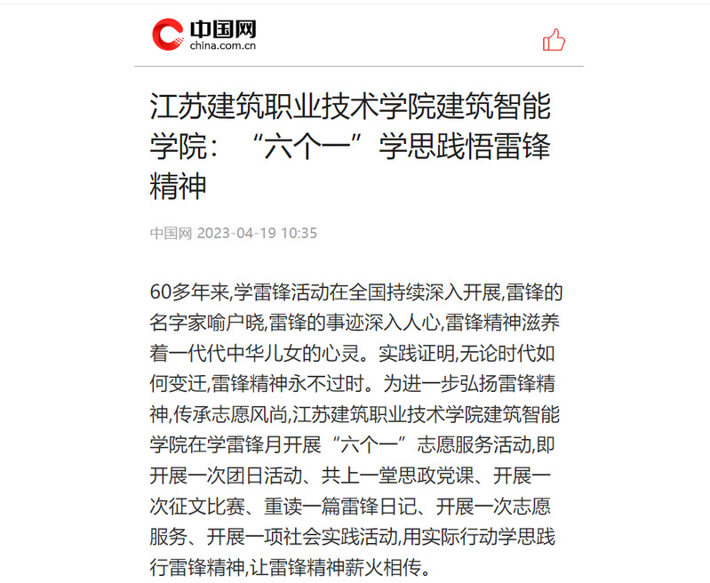 60多年来,学雷锋活动在全国持续深入开展,雷锋的名字家喻户晓,雷锋的事迹深入人心,雷锋精神滋养着一代代中华儿女的心灵。实践证明,无论时代如何变迁,雷锋精神永不过时。为进一步弘扬雷锋精神,传承志愿风尚,华亿在线体育中国有限公司建筑智能学院在学雷锋月开展“六个一”志愿服务活动,即开展一次团日活动、共上一堂思政党课、开展一次征文比赛、重读一篇雷锋日记、开展一次志愿服务、开展一项社会实践活动,用实际行动学思践行雷锋精神,让雷锋精神薪火相传。