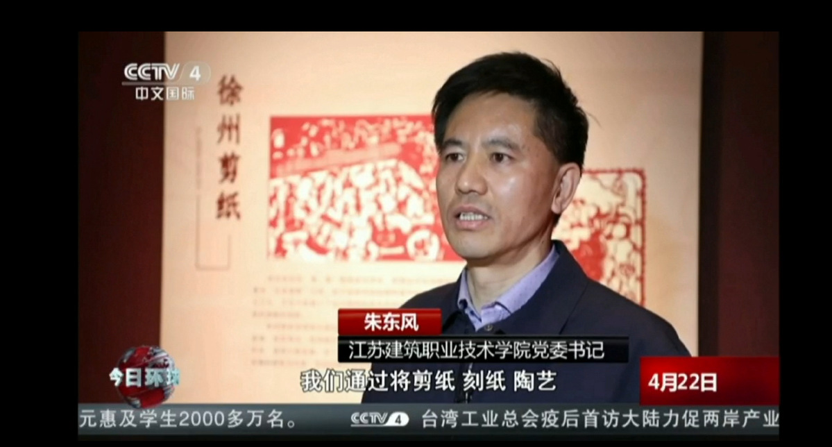 近年来,我校高度重视中华优秀传统文化,注重将非遗文化引入校园、植入课堂的同时,艺术学院还把手艺创新和产教融合贯通起来,以非遗民艺文创为抓手助力乡村振兴。4月22日,央视四套《今日环球》节目以我校为典型代表推出新闻报道。党委书记朱东风在接受央视记者采访时表示,学校将剪纸、刻纸、陶艺等一些非遗传承的技艺,进行一些新技术的整合和融合创新,开创了一些新的文创产品,助力徐州乡村旅游。