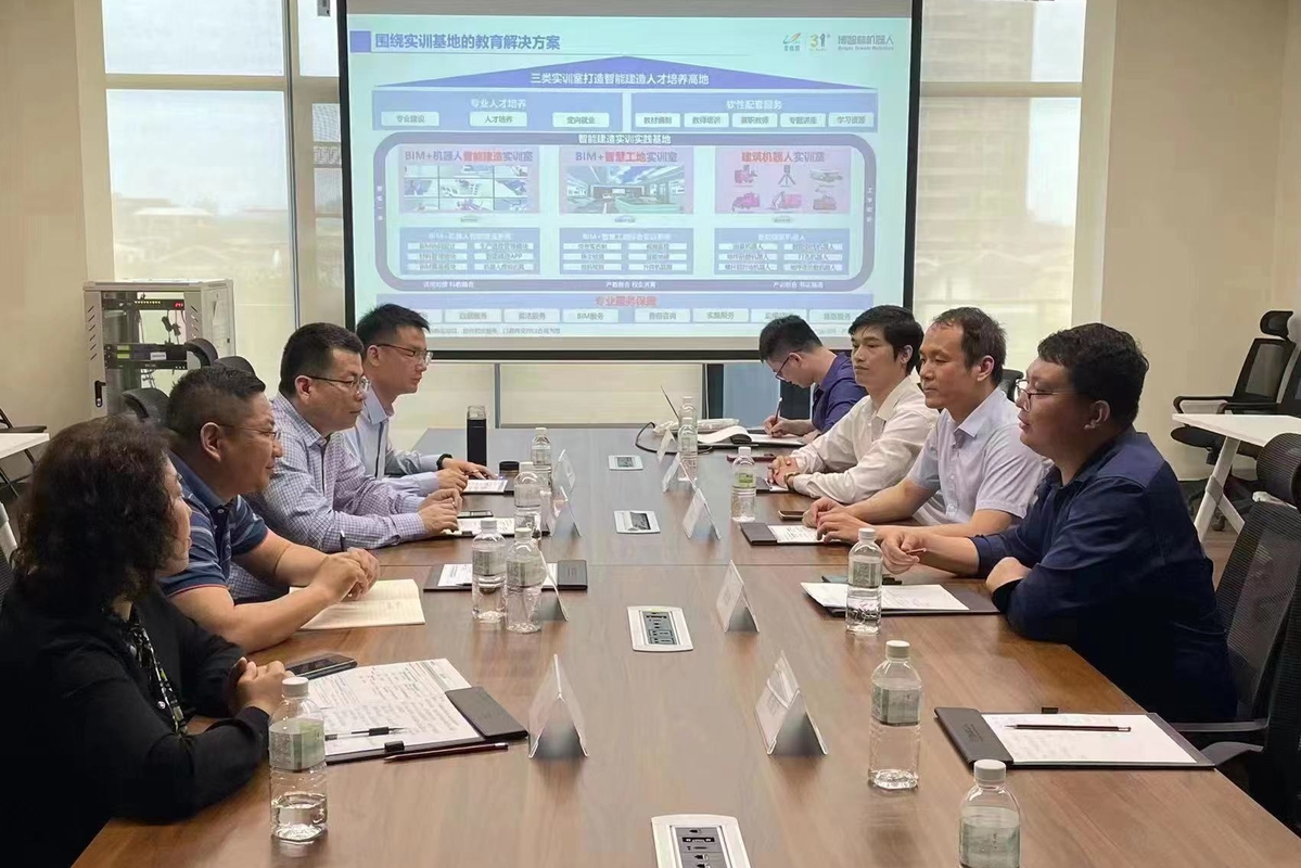 此次调研,双方达成了初步的合作意向,在尽快推进智能建造产业学院建设的同时,博智林将我校作为江苏区域中心,在教学、科研、学生实习、就业、培训等方面与我校开展多层次、多形式的合作,共同推动智能建造机器人行业的产业化和教育化发展,为我校创建全国一流智能建造特色鲜明的职业本科院校目标而努力。