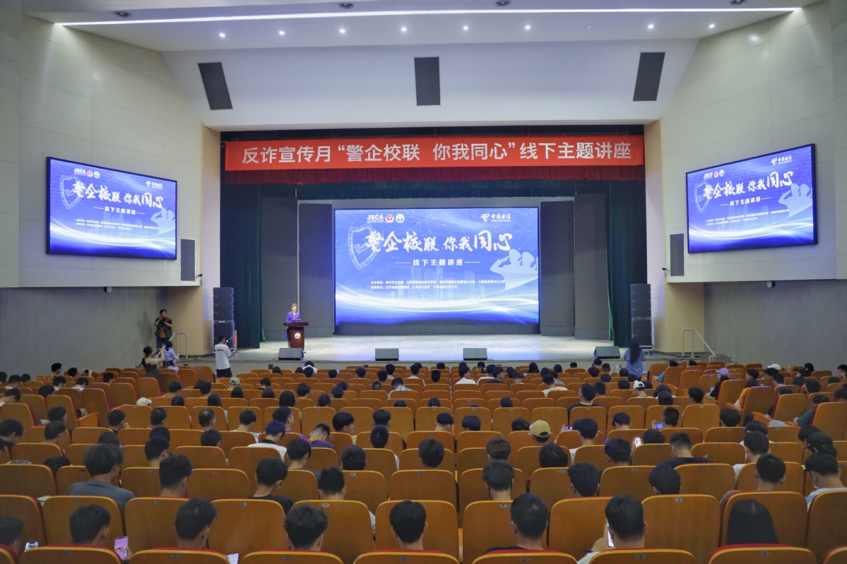 随后,公安系统、电信系统和在校学生代表宣读了反诈倡议书,与会领导共同启动了“识诈反诈,共建平安校园”主题活动。仪式结束后,我校在会堂举办了以“警企校联 你我同心”为主题的线下主题讲座,给广大师生再上一层反诈“防护罩”。