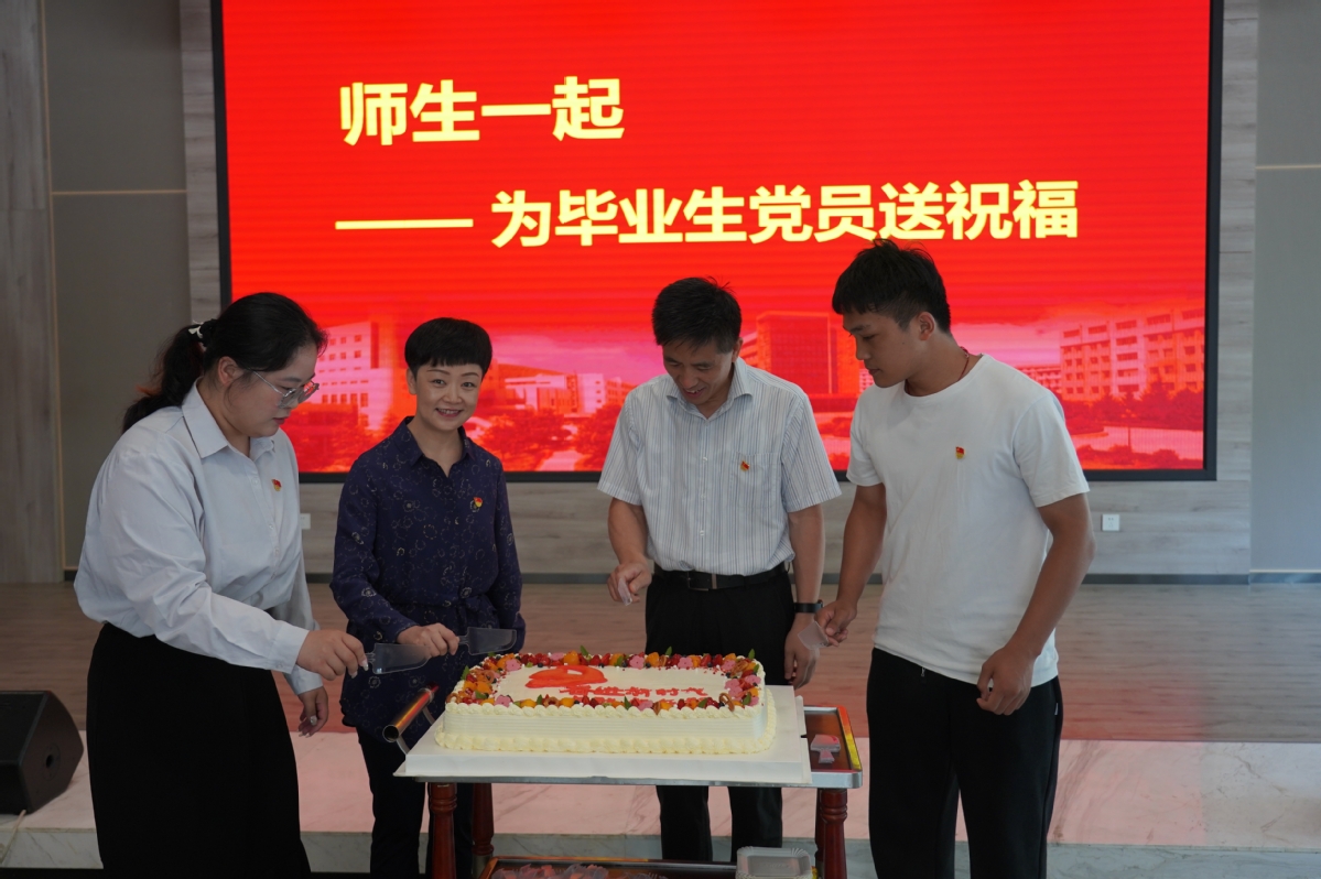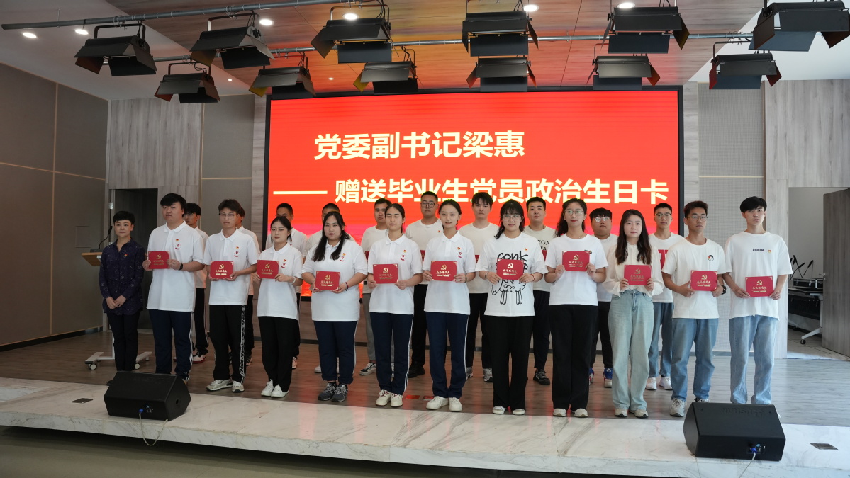 随后,毕业生党员集体过政治生日。梁惠为毕业生党员颁发政治生日贺卡,朱东风、梁惠一同为毕业生党员送上生日蛋糕和祝福。离退休老党员刘志平以《学党章 悟思想 建新功》为题为毕业生党员上大学期间的最后一次党课。课后,大家一同参观了学校思想政治教育基地,并重温入党誓词。