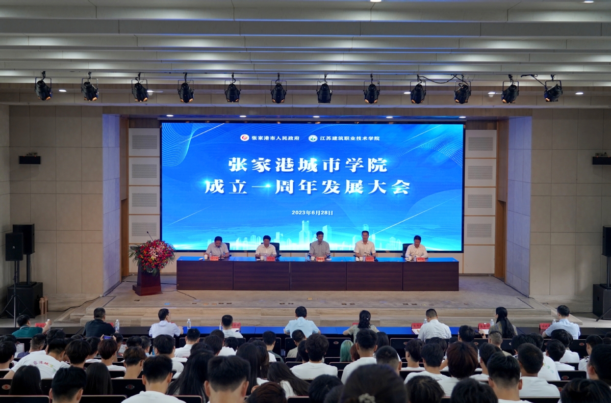 6月28日,正值张家港城市学院成立一周年之际,为进一步总结发展成果,凝聚政校企各方力量,共谋新的发展规划,学校在图书馆报告厅举行张家港城市学院成立一周年发展大会。张家港市委副书记、副市长李炳龙,张家港市人社局党委书记、局长张毅,张家港市科技局副局长俞萍,张家港市科协副主席陶晓峰等相关部门负责人;学校党委书记朱东风,党委副书记、校长沈士德,党委委员、副校长蒋兆峰及各相关单位负责人;江苏沙钢集团有限公司、光束汽车有限公司、张家港广大特材股份有限公司等共建企业代表参加活动。会议由蒋兆峰主持。