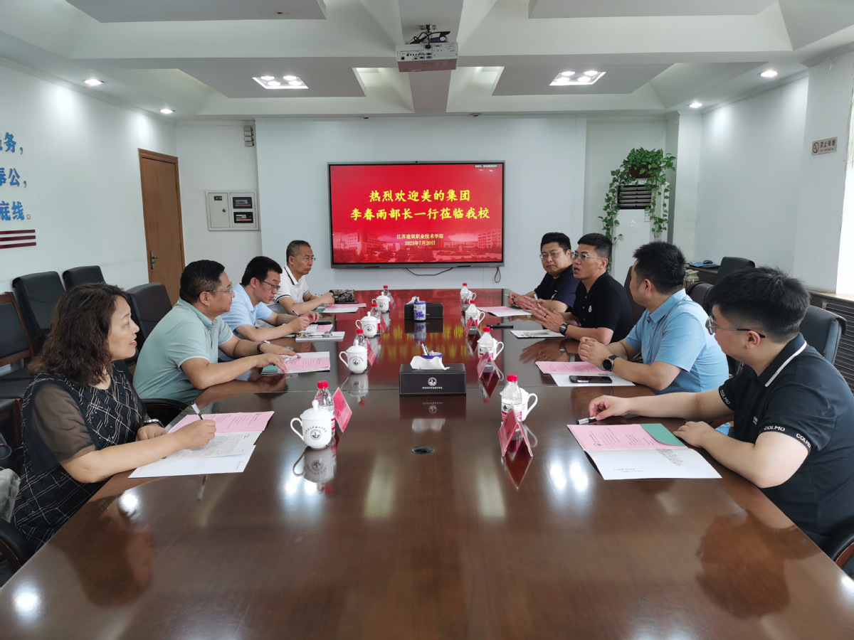蒋兆峰代表学校对李春雨一行的到来表示热烈欢迎,并从历史沿革、办学条件、办学成果以及未来发展规划等方面简要介绍了学校办学基本情况。李春雨介绍了美的集团近年来的发展重心和远景目标及中国区域用户服务部的技术技能人才需求情况。