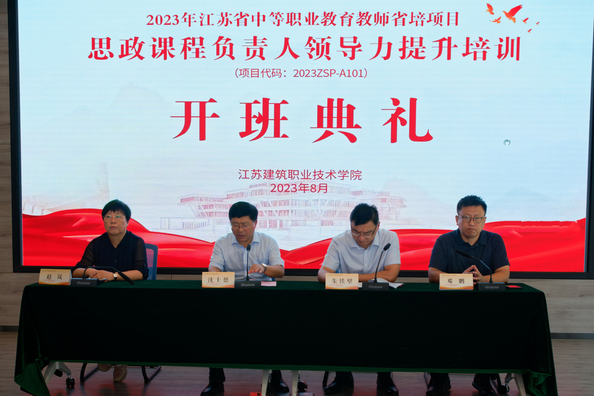 8月9日上午,由省教育厅、省师培中心主办,我校承办的2023年江苏省中等职业教育教师省级培训项目——思政课程负责人领导力提升培训在路演大厅开班。党委副书记、校长沈士德,人事处、马克思主义学院等相关负责同志出席开班仪式。开班仪式由马克思主义学院院长邓鹏主持。