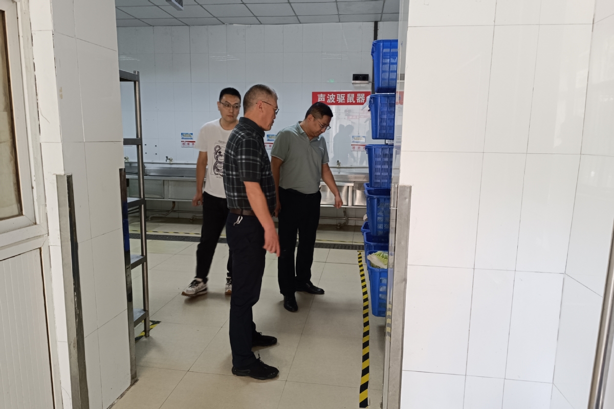 蒋兆峰逐项检查了学生食堂原材料储存、加工制作、食品留样、食品售卖、环境卫生、餐具清洁消毒、用气用电安全等情况,不放过一个细节、不疏忽一个角落。