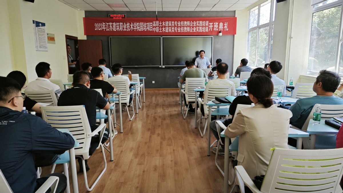 9月1日上午,由江苏省教育厅主办的2023年江苏省高职院校教师国家级培训项目建筑工程技术专业教师定向企业实践和2023年江苏省中职院校教师国家级培训项目土木建筑类专业教师企业实践项目开班,党委副书记、校长沈士德出席开班仪式,人事处、建筑建造学院等相关负责同志参加开班仪式。开班仪式由建筑建造学院副院长程强强主持,共有来自全省16所高职院校的20名教师和19所中职院校的19名教师参加本次培训。