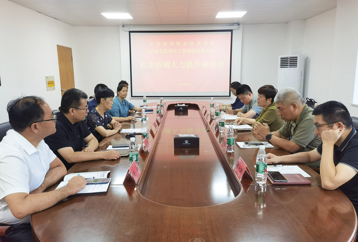 为进一步推动校企合作,促进产教融合,9月5日下午,我校与无锡交通建设工程集团有限公司在第二会议室开展校企协调人力提升座谈会,党委副书记梁惠、无锡交通建设工程集团有限公司党委副书记刘涛出席座谈,校科技处、校企合作处、招就处、交通工程学院及企业相关部门负责人参加。