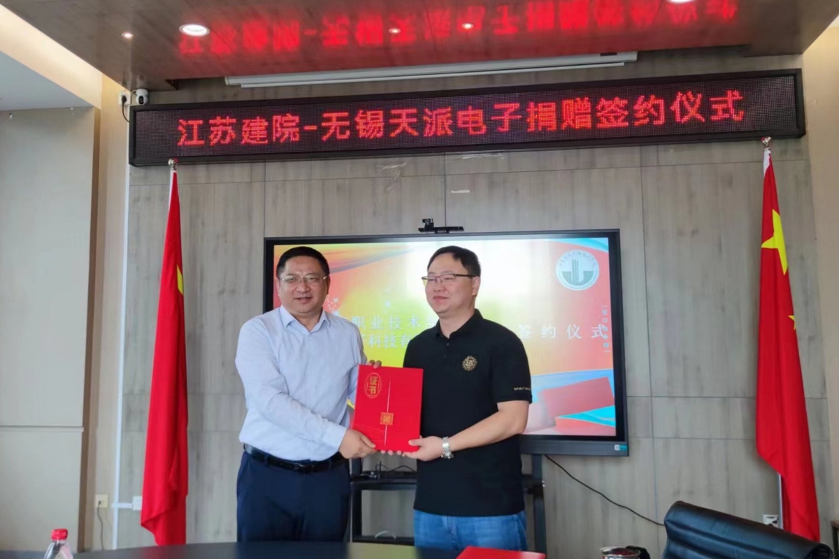 捐赠仪式上,蒋兆峰代表学校致辞。他对热心支持学校事业发展的无锡天派电子科技有限公司表示感谢,并简要介绍了学校近年来的发展以及取得的成果。他表示,学校始终把培养具有创新能力、综合素质和国际视野的复合型创新型人才作为教育教学的根本目标,此次捐赠不仅为学生培养提供了有力支持,更是搭建起了学生和企业之间沟通的桥梁。