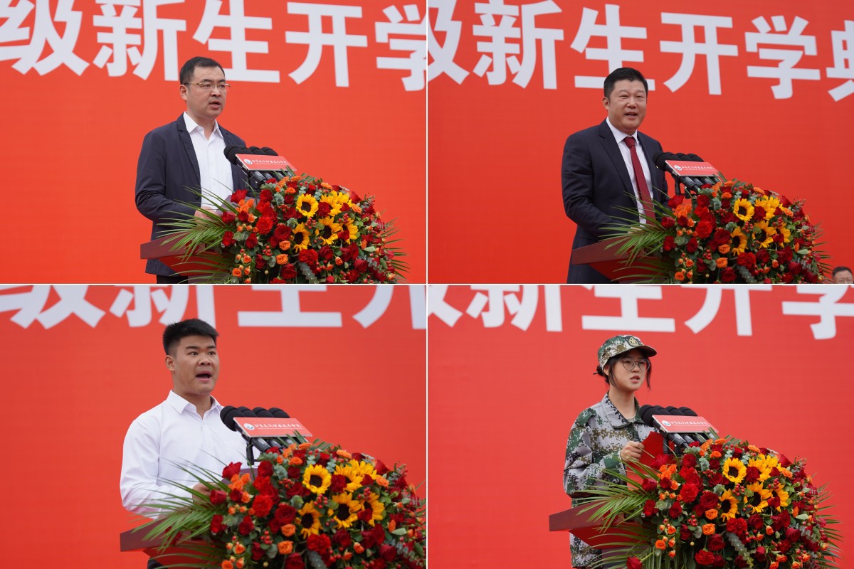 最后,沈士德以《解锁新征程,赋能向未来,以正确的方式打开你的大学》为题,为新生讲授开学第一课。他向新生简要介绍了学校44年的办学历史与育人成就,并对同学们的大学生活提出了三点期望:一是立德修身,擦亮青春底色,以心有所向做信念如炬的“追梦人”;二是崇业尚学,保持勤学本色,以心有所畏做自律如昔的“坚守者”;三是求实创新,发扬自信亮色,以心有所往做担当如鼎的“排头兵”。他勉励同学们秉承“厚生尚能”的校训,弘扬“求实创新”校风,以勇毅向前的姿态、追求卓越的精神,立德修身、崇业尚学、求实创新,努力成长为新时代的领跑者,以正确的方式打开大学,解锁新征程,赋能向未来,以实际行动向自己的大学、未来的发展交出满意的答卷。