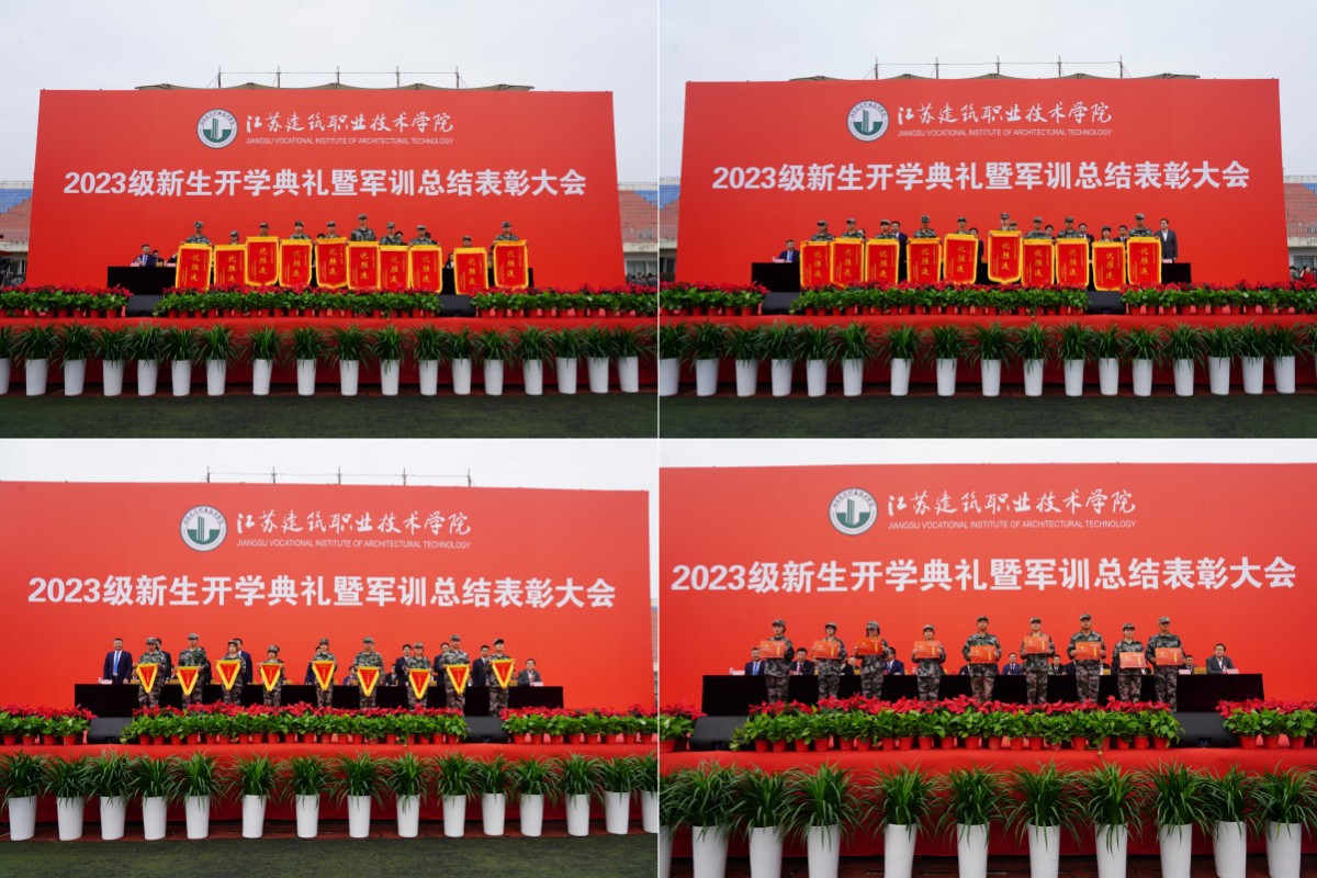 沈士德、江峰分别代表学校和王杰部队互赠牌匾。朱作付宣读军训表彰文件,并举行军训优胜连、优秀宿舍、先进个人、优秀教官颁奖仪式。在校生代表建筑建造学院建工21-11班张梦钵,新生代表建筑智能学院环境23-1班陈佳妮,教师代表建筑建造学院孙韬,校友代表中国二十二冶集团有限公司总经理助理兼江苏公司总经理、党委副书记张盖先后上台发言。