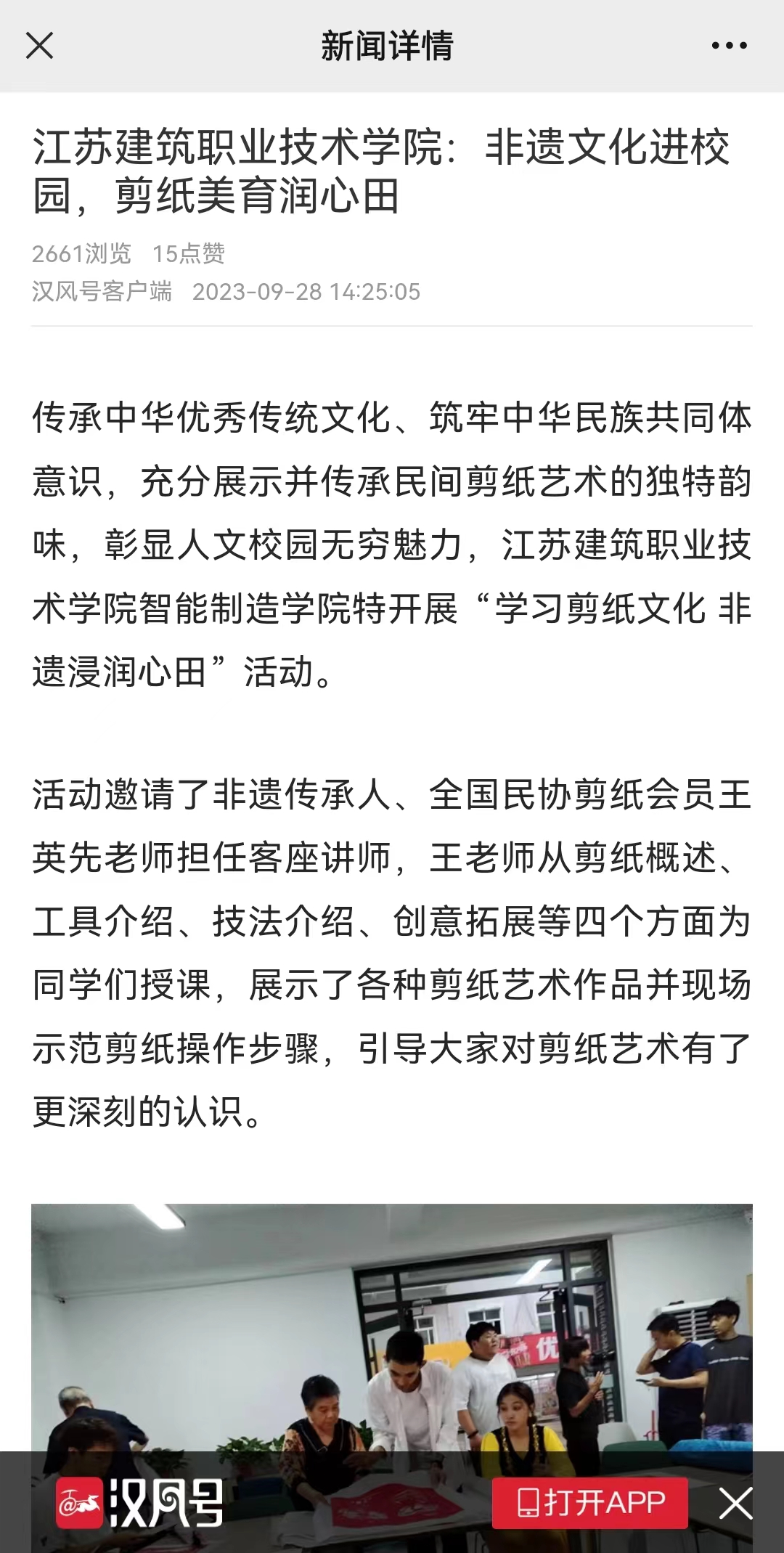 通过剪纸作品的欣赏学习,同学们体验了剪纸学习的乐趣、方法,促进了感知美、鉴赏美等艺术表现能力的养成,培养了他们的美学素养,这是一次非常有意义的活动。