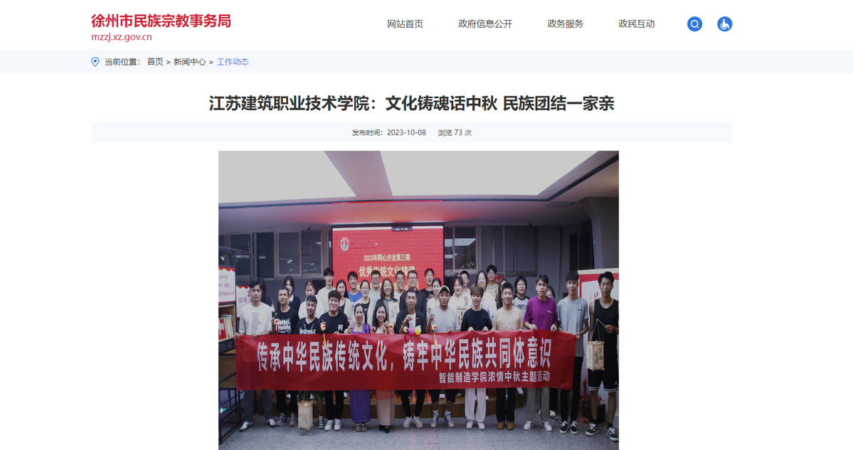 9月27日,江苏建筑职业学院学院在学生社区组织开展了“月圆中秋话团圆 民族团结一家亲”为主题的浓情中秋系列活动,通过中华传统文化铸牢中华民族共同体意识,30多名各族学生及2名外籍留学生在浓浓的中华传统节日文化氛围中度过欢快的中秋佳节。