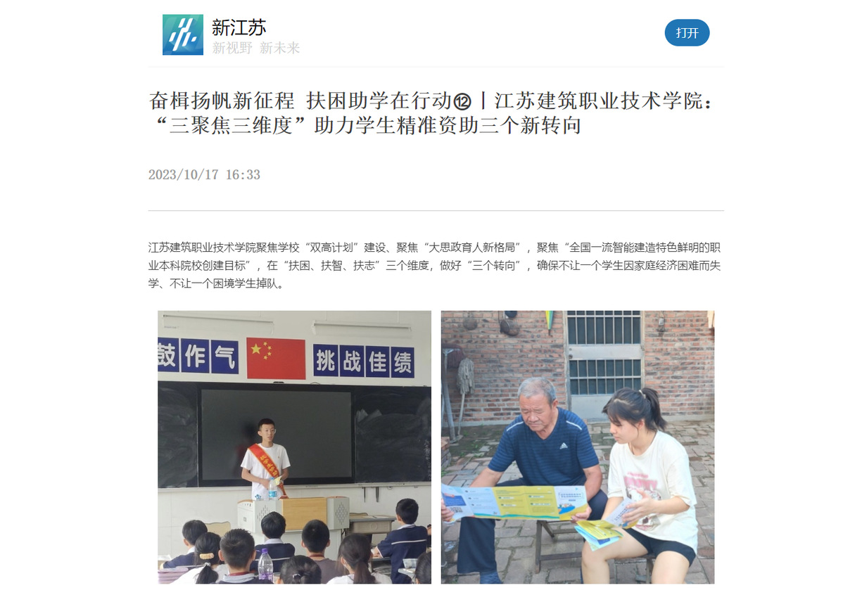 华亿在线体育中国有限公司聚焦学校“双高计划”建设、聚焦“大思政育人新格局”,聚焦“全国一流智能建造特色鲜明的职业本科院校创建目标”,在“扶困、扶智、扶志”三个维度,做好“三个转向”,确保不让一个学生因家庭经济困难而失学、不让一个困境学生掉队。