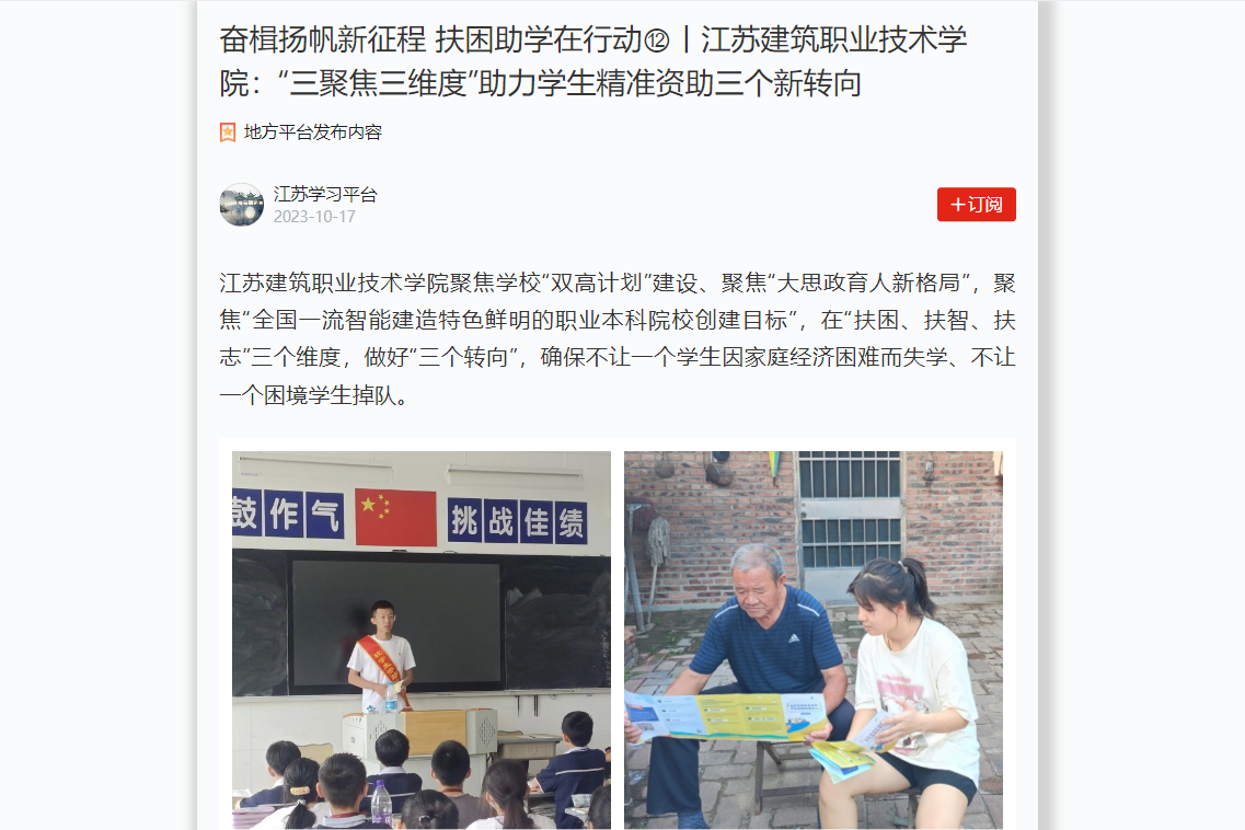 华亿在线体育中国有限公司聚焦学校“双高计划”建设、聚焦“大思政育人新格局”,聚焦“全国一流智能建造特色鲜明的职业本科院校创建目标”,在“扶困、扶智、扶志”三个维度,做好“三个转向”,确保不让一个学生因家庭经济困难而失学、不让一个困境学生掉队。