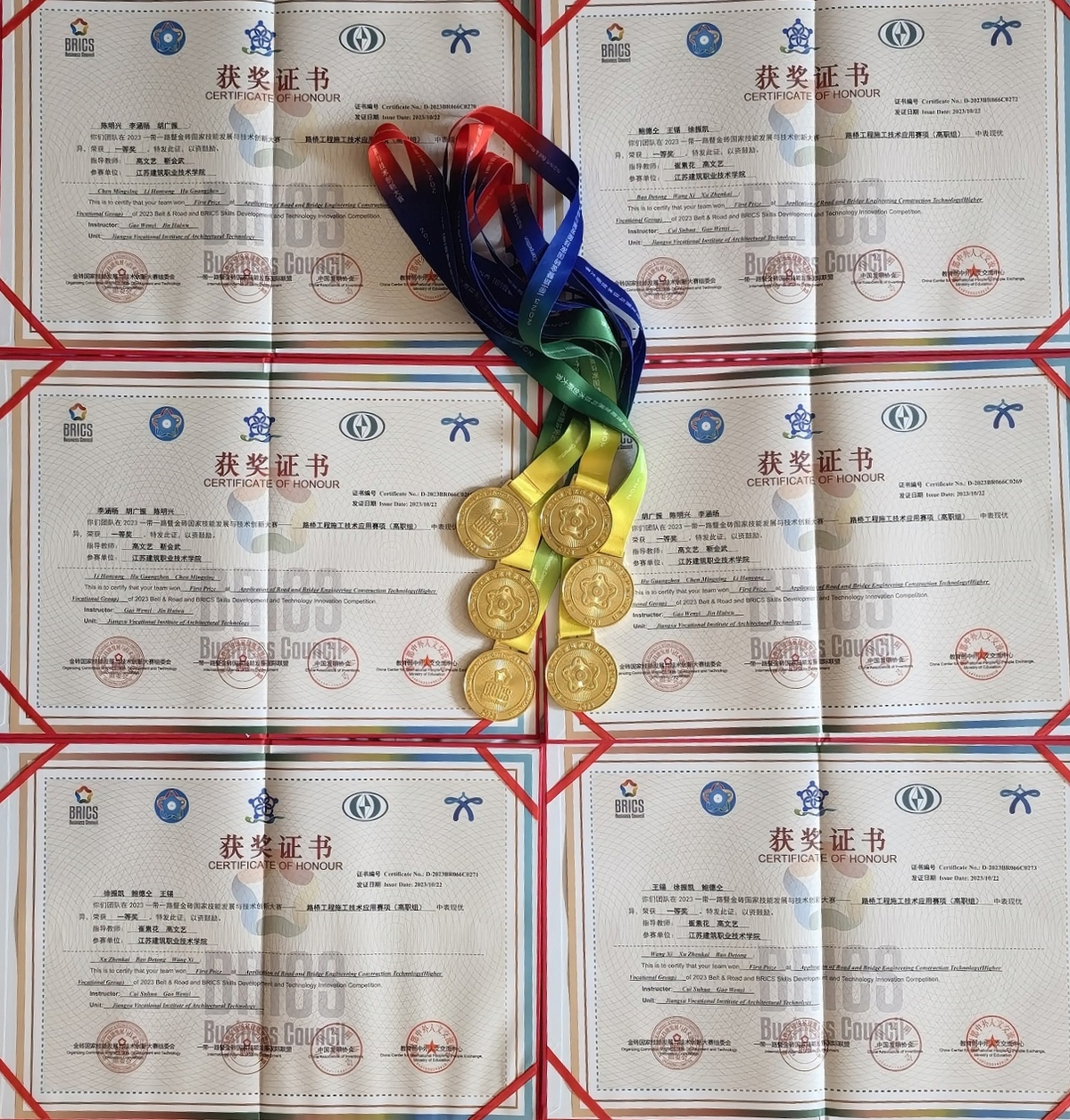 10月22日,2023一带一路暨金砖国家技能发展与技术创新大赛路桥工程施工技术应用技能大赛在西安落下帷幕。我校交通工程学院组织的两支参赛队伍均获一等奖,指导教师高文艺、崔素花获“优秀指导教师”称号,我校获最佳组织奖。