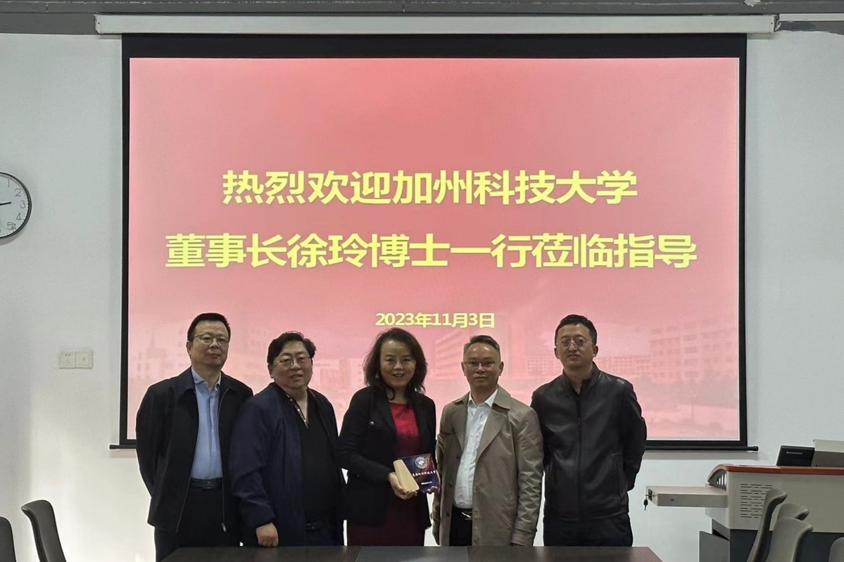 11月3日,美国加州科技大学董事长及联合创始人、Acxiom集团副总裁、美国北加州江苏商会副会长徐玲博士一行来访我校。校长、党委副书记沈士德接待来访客人,并签署两校友好交流协议书。
