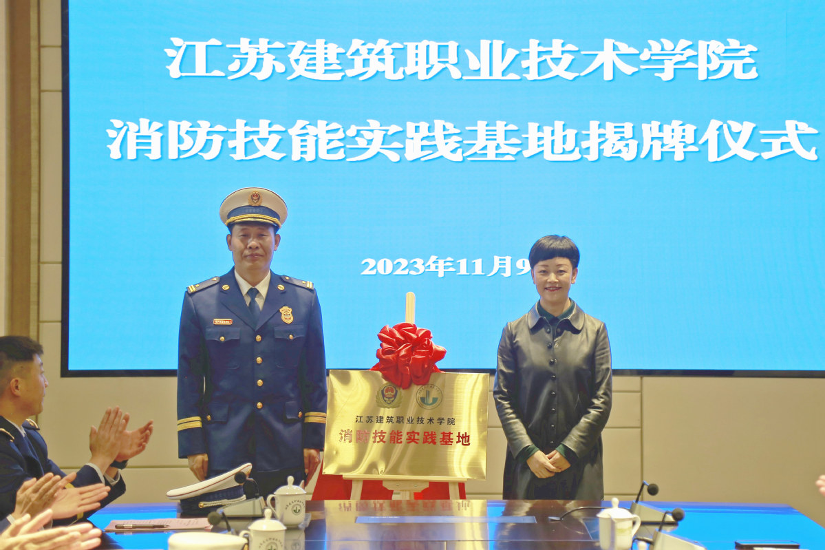 揭牌仪式上,梁惠、王震龙为徐州市泉山区消防救援大队思政教育基地揭牌,梁惠、孙作举为我校消防技能实践基地揭牌,相关负责人签署共建合作协议。