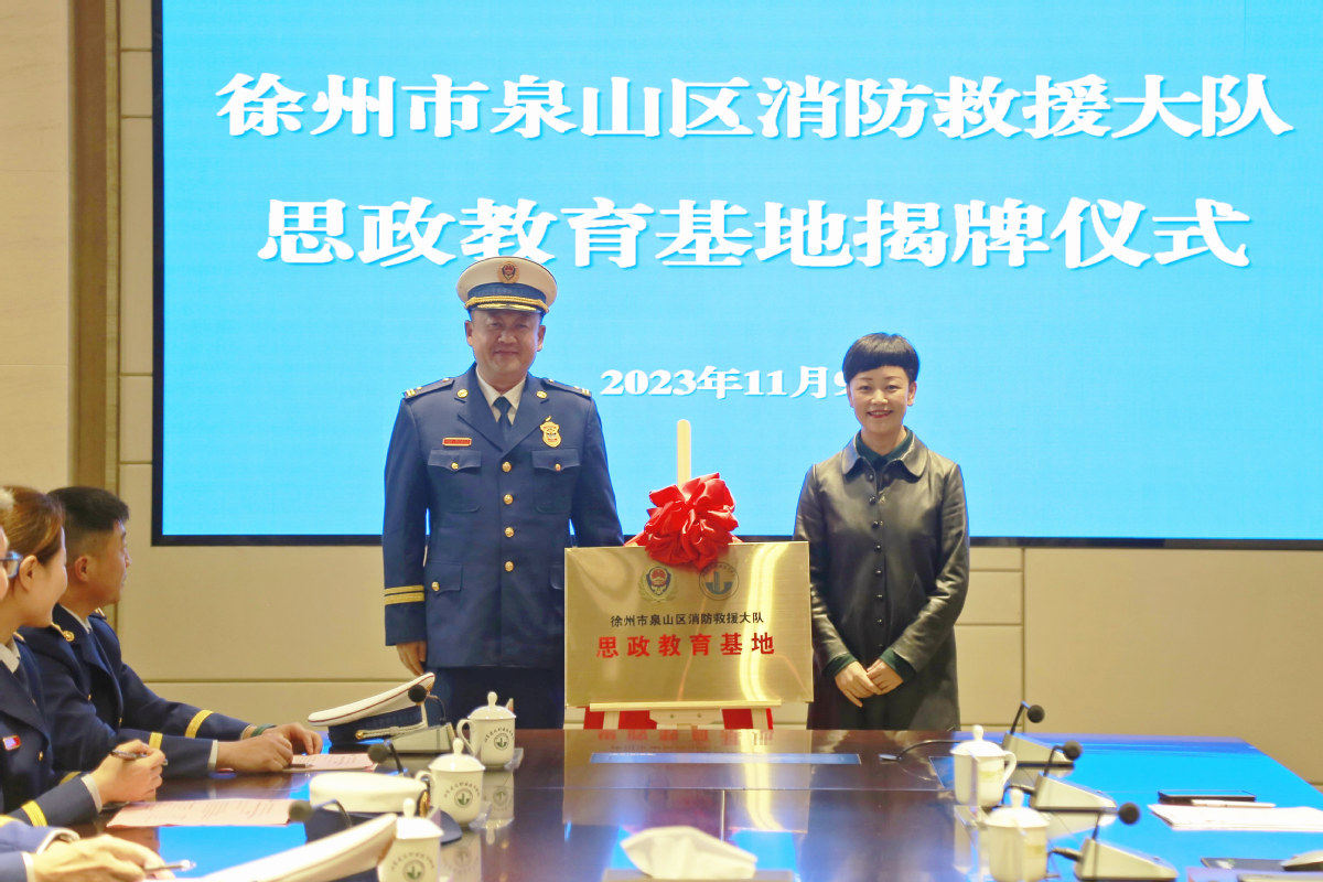 11月9日下午,在第32个全国消防日这一特殊日子,我校与徐州市泉山区消防救援大队开展共建活动。党委副书记梁惠,徐州市泉山区消防救援大队党委书记、政治教导员王震龙,大队长孙作举,副大队长李亚等消防指战员和我校相关部门负责人参加此次活动。