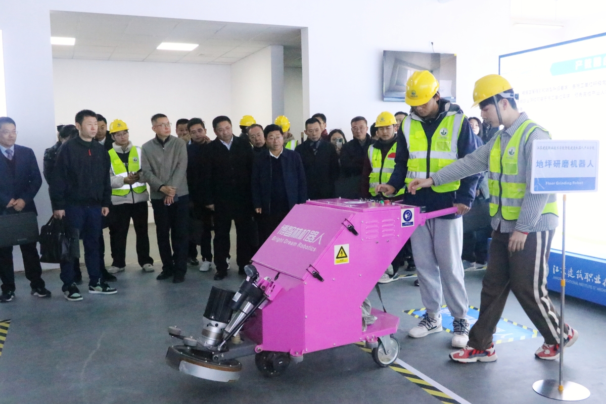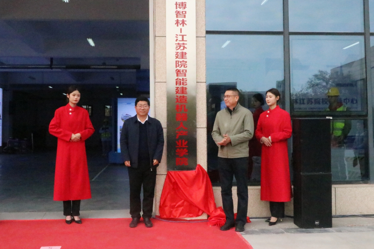 随后,章小刚和沈士德为智能建造机器人产业学院揭牌。沈士德授予合作企业捐赠证书,蒋兆峰代表学校致辞,广州云蝶科技有限公司副总裁陈天代表企业致辞,全体成员参观了智能建造机器人产业学院。