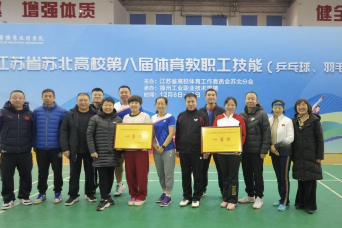 12月9日-10日,由江苏省高校体育工作委员会苏北分会主办的江苏省苏北高校第八届体育教职工技能(乒乓球、羽毛球)比赛在徐州工业职业技术学院举行,我校体育教师代表队获羽毛球比赛团体一等奖,乒乓球比赛团体二等奖。