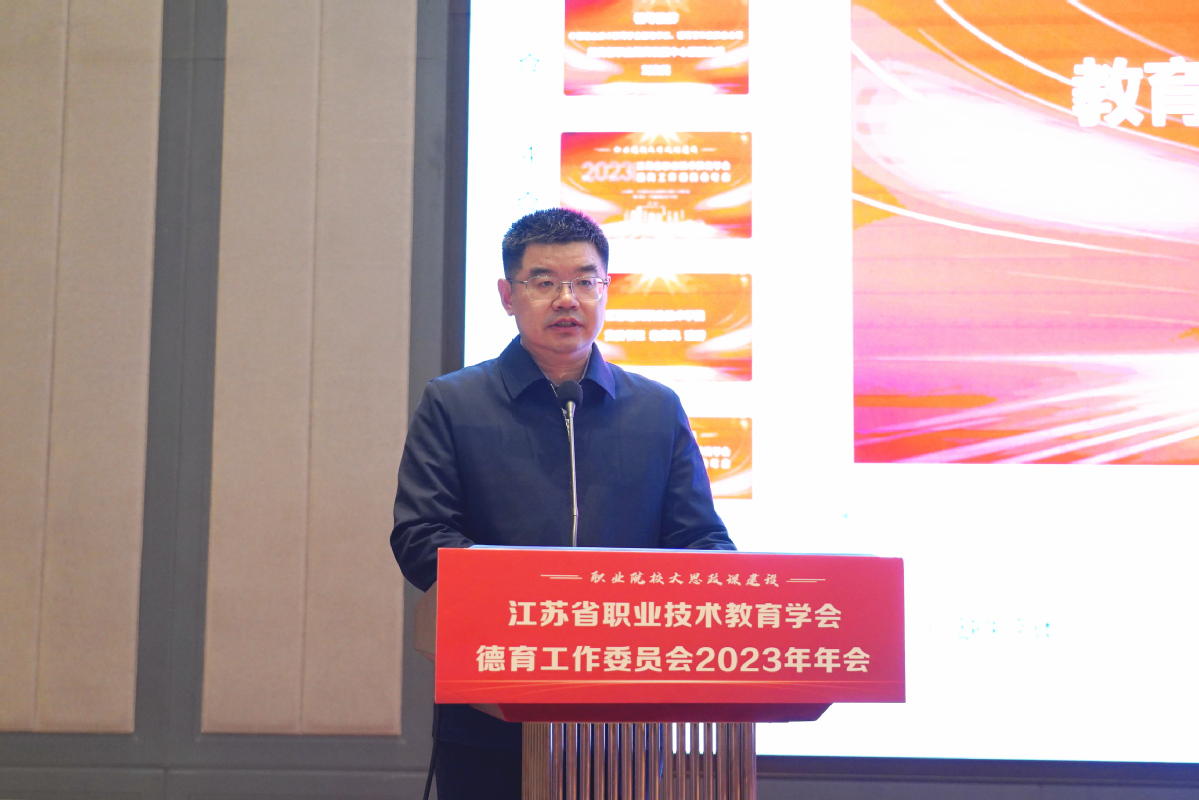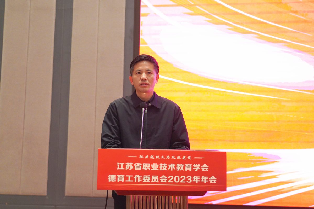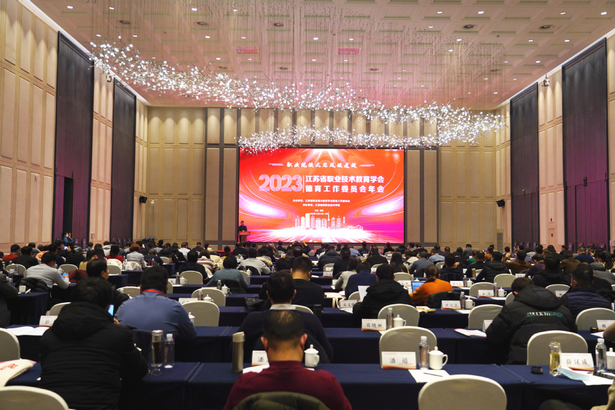 12月14日-15日,由江苏省职业技术教育学会德育工作委员会主办,我校承办的江苏省职业技术教育学会德育工作委员会2023年年会在我校举行。江苏省职业技术教育学会常务副会长尹伟民,江苏省职业技术教育学会德育工作委员会主任、江苏联合职业技术学院院长王伟,省职教学会德育工作委员会主任副主任、秘书长章宏,省职教学会德育工作委员会副主任梅纪萍,江南大学马克思主义学院副院长、博导唐忠宝,我校党委书记朱东风、党委副书记梁惠等领导和嘉宾出席年会开幕式。来自省内160余家职业院校近300名领导和德育工作者参与此次年会。
