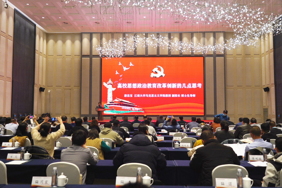 随后,唐忠宝作了题为《当前高校思想政治教育改革的几点思考》的专家报告,他从立场、态度、选题、形式、内容五个维度切入,客观分析当前高校思想政治教育面临的挑战和存在的不足,并对解决这些问题,进一步提升高校思想政治教育工作的实效给出应对策略和解决办法。