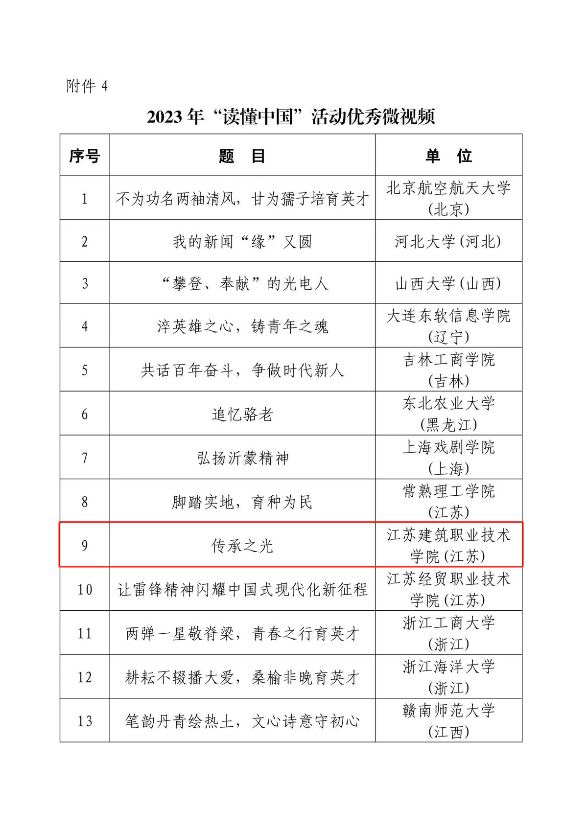 近日,教育部关工委和江苏省教育系统关工委分别公布了2023年“读懂中国”活动获奖名单,我校多个作品获得荣誉。