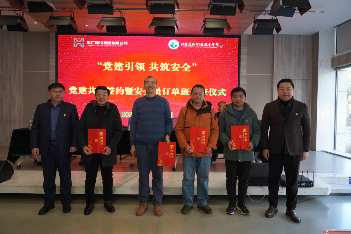 随后,刘海波、钱育武为安全员订单班4名授课教师颁发聘书,华仁建设集团有限公司党支部和我校建筑建造学院党总支签署党建共建协议。