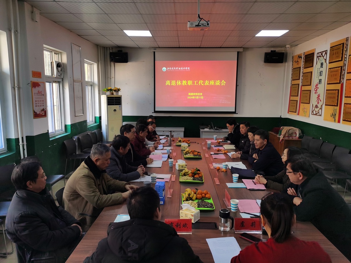 1月11日上午,我校离退休教职工代表座谈会在离退处会议室召开。党委书记朱东风,党委副书记梁惠,各相关职能部门负责人及离退休教职工代表参加座谈。会议由朱东风主持。