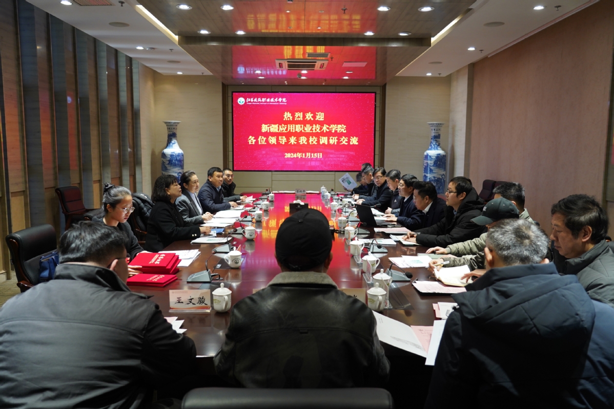1月15日上午,新疆应用职业技术学院党委书记陈梅兰、副校长(援疆)刘庆新和科研处、石油与化学工程学院、党委办公室等部门有关同志一行5人来我校就职业教育高质量发展等工作开展调研,学校校长沈士德、副校长刘海波等出席调研活动,党政办公室、教务处、人事处、科技处、团委等相关部门负责人和部分援疆教师参加调研。