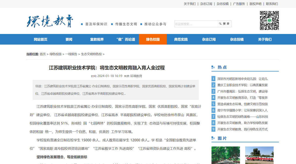 学校构建生态文明教育体系,在日常教学过程中将生态文明教育纳入各学科专业课程,在持续巩固原有建筑类特色优势学科的基础上,设立了环境工程技术、建筑智能化工程技术、园林工程技术、摄影测量与遥感技术等6个交叉学科;精心构建《绿色建筑技术》《碳中和与绿色发展》《建筑节能与绿色建筑》《城乡环境与生态》等相关专业课程和通识课程体系。