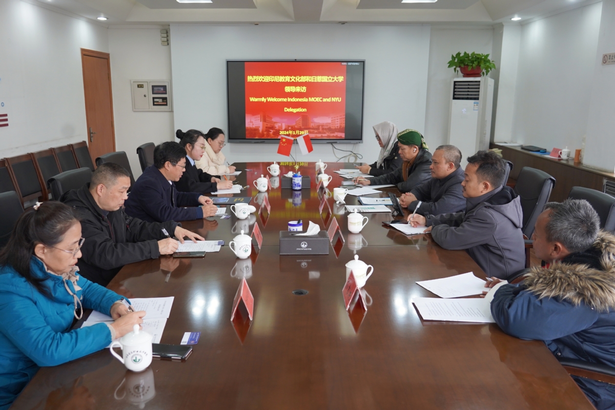 1月29日上午,印度尼西亚教育文化部人事司司长顾问、东南亚教育部长组织开放学习中心副主任苏亚德,日惹国立大学副校长西斯万托约一行5人来访我校。党委副书记、校长沈士德在行政楼第一会议室接待来宾一行,国际合作与交流处有关同志陪同洽谈。
