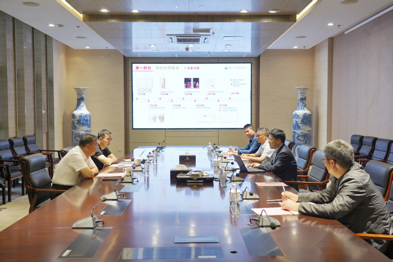 沈士德代表学校对任豪祥一行表示热烈欢迎,并向对方简要介绍了学校发展历程、办学特色以及国家“双高计划”建设成效、行校企深度合作基础、创建职业本科情况等。他表示,学校积极适应产业转型升级和区域经济社会发展需求,不断优化学校新商科专业结构布局,持续深化行校企合作,着力培养数字经济新商科技术技能型人才。他希望在中国物流与采购联合会和行指委会的支持与帮助下,能够进一步推动学校物流类新专业申办、柬埔寨“郑和学院”和“京东数字商务产业学院”共建,助力学校资源库建设、学生技能大赛等方面取得更大进展。