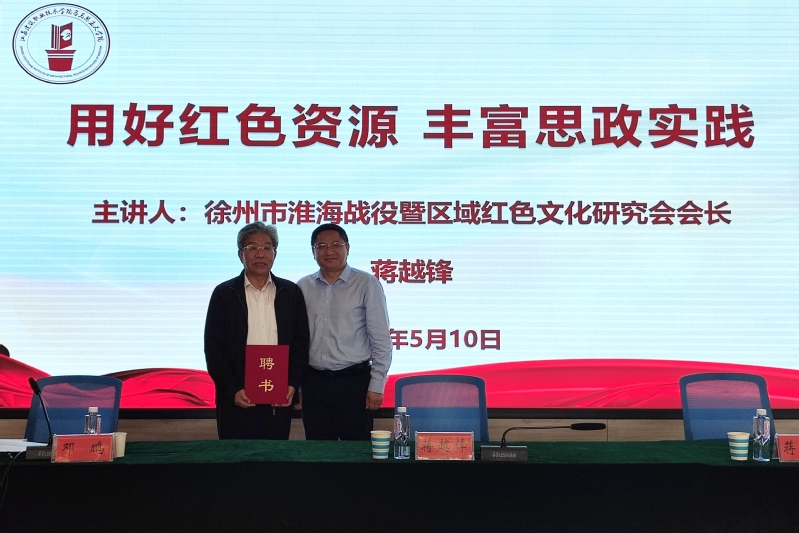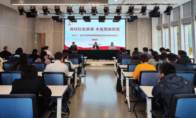 5月11日下午,徐州市淮海战役暨区域红色文化研究会会长、淮塔管理局原局长蒋越锋受邀来我校作题为《用好红色资源 丰富思政实践》的专题报告。党委委员、副院长蒋兆峰,我校全体思政课教师、专职辅导员及“青马班”学生参加此次报告会。报告会由马克思主义学院院长邓鹏主持。