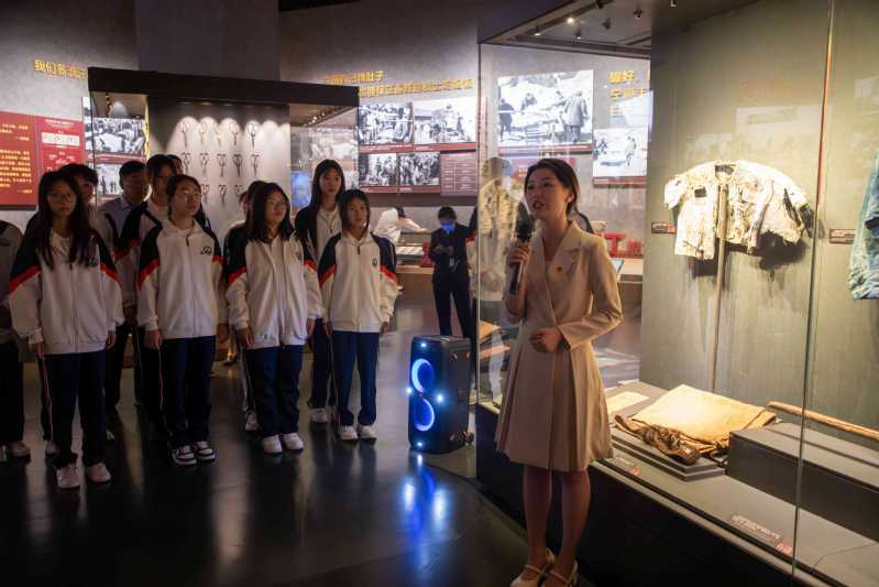仪式后,建筑管理学院造价22-9班王诺同学在淮海烈士纪念馆内以《一根木棍》为题为师生带来了一堂精彩的情境微团课。