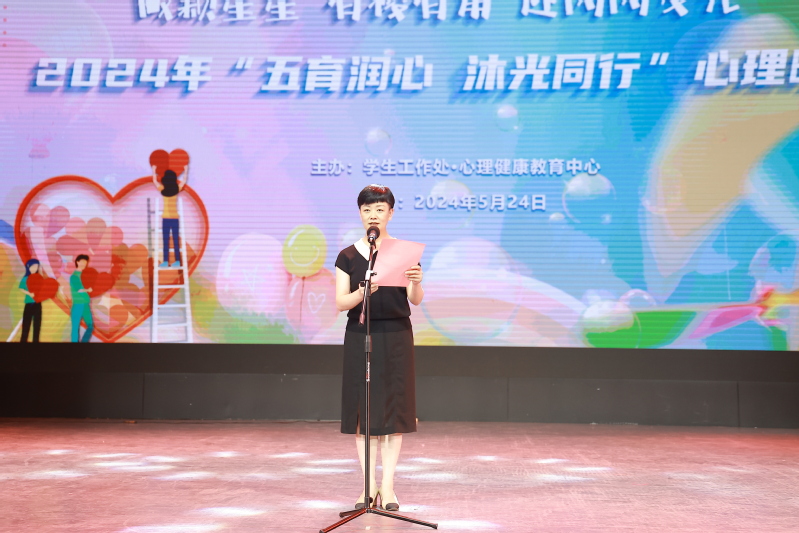 5月24日晚,我校在会堂举办5·25“五育润心 沐光同行”大学生心理晚会,旨在倡导大学生关爱自我、接纳自己,关注心理健康和心灵成长,进一步提升自身心理素质。校党委副书记梁惠,党委宣传部、团委、学工处等职能部门代表,校心理健康教育中心教师,各二级学院党总支副书记、专职辅导员及千余名学生参加。
