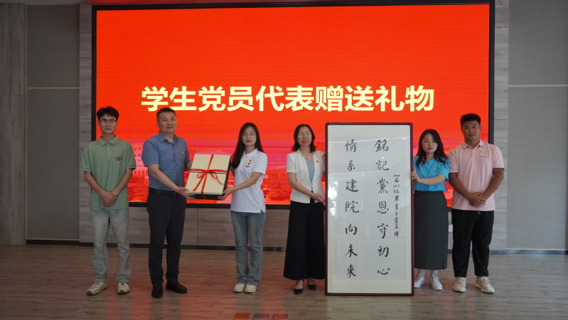 毕业生党员代表回赠母校“铭记党恩守初心 情系建院向未来”手写字画和祝福感恩贺卡。