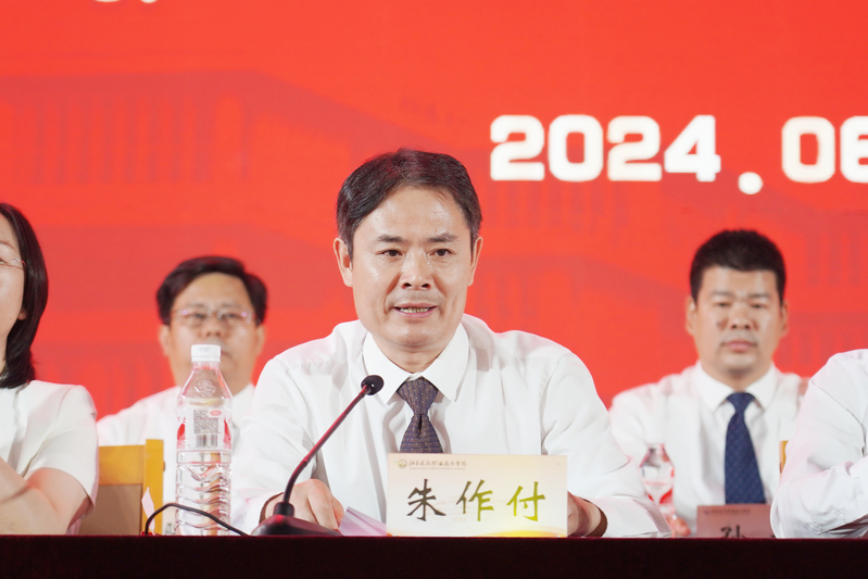 朱作付宣读2024届省级、校级优秀毕业生表彰决定。蒋兆峰为2024届毕业生代表、留学生代表颁发毕业证书。党委委员、组织部部长宋丹萍宣读《关于准予2024届5180名学生毕(结)业的决定》。