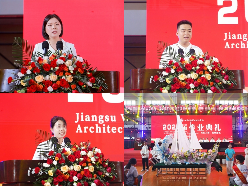 教师代表、建筑建造学院教师赵美霞,毕业生代表、经济管理学院酒店21-1班戴亦韵,在校生代表、建筑装饰学院室设22-2班孙壮壮先后发言。