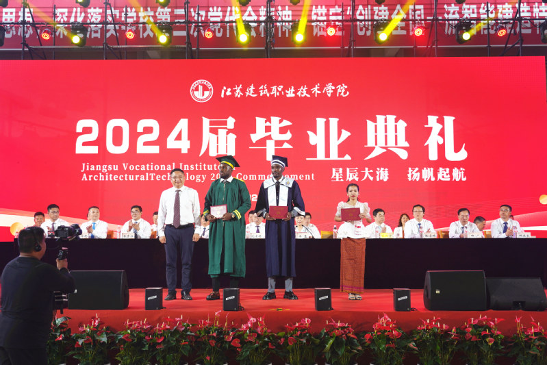 6月7日下午,我校2024届毕业典礼在校体育馆举行。党委副书记、校长沈士德,党委副书记梁惠,党委委员、纪委书记朱作付,党委委员、副校长蒋兆峰,相关职能部门负责人,各二级学院院长、教师代表、专兼职辅导员及2024届全体毕业生参加典礼。“未来非洲计划”项目的合作院校及喀麦隆文理学院、非洲计算机学院校方代表等应邀出席典礼。毕业典礼由梁惠主持。