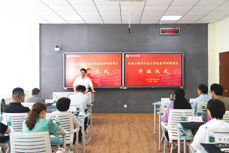 近日,济南工程职业技术学院教师研修项目开班仪式在我校教一楼举行。党委副书记、校长沈士德,两校人事处、我校建筑建造学院主要负责同志及18名参培教师参加开班仪式。