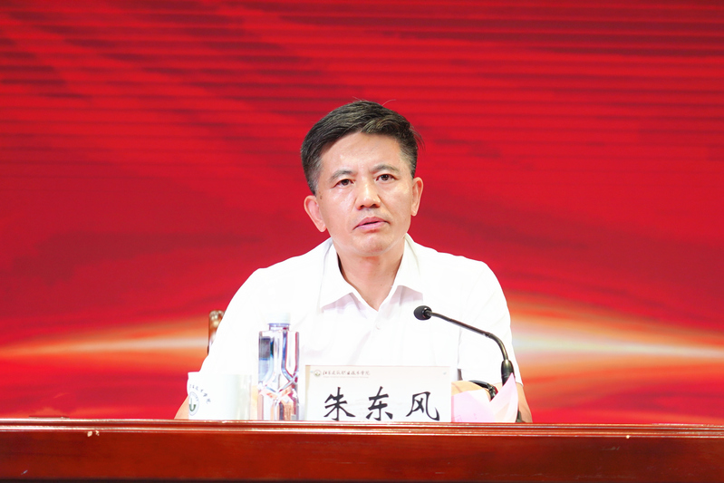 朱东风在讲话中指出,过去一年,学校党委高举习近平新时代中国特色社会主义思想伟大旗帜,团结带领广大师生员工,坚持“党建引领、创新驱动、质量兴校、特色发展”的办学理念,积极主动抢抓机遇,坚定不移深化改革,全面加强党的建设,推动各级党组织全面进步、全面发展。他强调,一年来,学校始终坚持以高质量党建引领办学事业高质量发展,在组织建设、队伍建设、内部治理、教育教学、科学研究、人才培养、校企合作、社会服务等领域都取得明显成效,为学校事业高质量发展不断夯实基础。他结合学校事业发展,提出了三点要求:一是强化政治引领,推动党纪学习教育取得扎实成效,要把工作着力点放在坚持党要管党的原则上,把工作关键点放在全面从严治党的深化上,把工作落脚点放在党纪学习教育的成效上;二是践行初心使命,推动学校改革发展作出时代担当,党员干部要心系师生、提升服务保障,心系岗位、强化履职尽责,心系学校、勇于敢闯敢创;三是紧扣中心重点,推动学校高质量发展再上新高度,要坚持党建引领、推动争先进位,抢抓政策机遇、加快职本创建,紧贴行业发展、把握发展趋势。他要求,各级党组织和广大党员干部认真学习先进典型,大力弘扬优良传统,以党纪学习教育为抓手,以《条例》标准要求为尺子,修身正己,振奋精神,扎实工作,为全面实现学校“十四五”和第三次党代会确定的宏伟目标而努力奋斗。沈士德在主持大会中表示,学校深入开展党纪学习教育,大力弘扬先进事迹和崇高精神,激励全校党员传承红色基因,赓续百年奋进力量,在全校范围内营造学习先进、崇尚先进、争当先进的良好氛围,为学校高质量发展和全面完成今年各项任务而努力奋斗。他要求,各党总支、直属党支部要认真学习领会习近平总书记关于全面加强党的纪律建设的重要论述,扎实推动党纪学习教育走深走实,牢记嘱托、感恩奋进,以今天受表彰的先进为榜样,对照典型找差距,在教学、科研、管理和服务的第一线,充分发挥基层党组织的战斗堡垒作用、党员的先锋模范作用,奋力谱写新时代学校高质量发展新篇章。