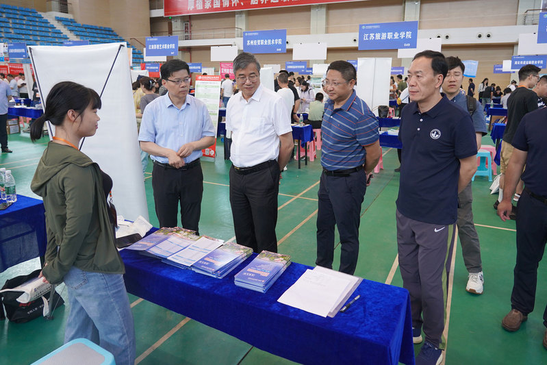为做好江苏省高考招生第二阶段考生报考指导服务工作,帮助考生充分了解高职院校,理性填报高考志愿,7月21日上午,由江苏省教育考试院和江苏省高校招生就业指导中心联合主办,我校承办的“江苏省2024年高考考生职业生涯与志愿填报咨询会”在学校体育馆举行。江苏省高校招生就业指导服务中心主任胡建平,徐州市教育考试院院长郭凤清,校党委委员、副校长蒋兆峰到现场指导,并与参加咨询会的高校工作人员、考生及其家长交流,校招生就业处等职能部门负责同志参加。