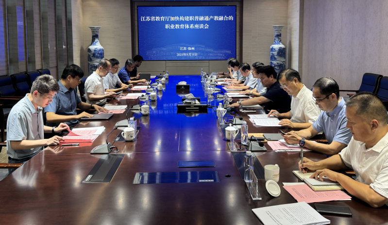 为深入学习贯彻党的二十届三中全会精神,科学谋划教育强省建设,加快构建职普融通产教融合的职业教育体系,8月17日下午,省教育厅关于加快构建职普融通产教融合的职业教育体系第四次座谈会在我校召开。省教育厅职业教育处处长马万全、课题组成员,徐州市、县教育局领导,徐州市中高职院校代表参加会议。
