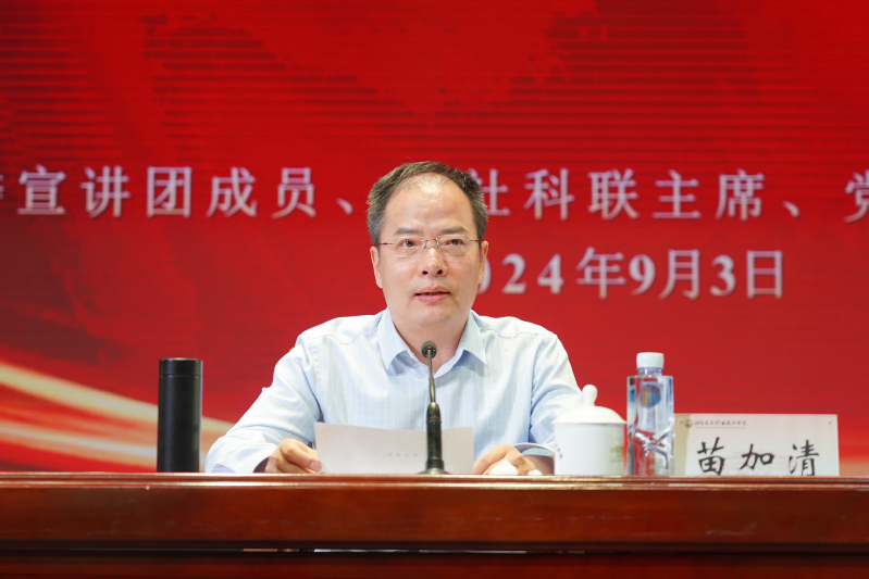 报告会上,苗加清围绕习近平总书记在党的二十届三中全会上的重要讲话及全会《决定》,从深刻认识把握全会的里程碑意义、深入学习领会习近平总书记在全会上的重要讲话精神、全面准确理解《决定》提出的进一步全面深化改革重大举措等方面,对党的二十届三中全会精神作了系统宣讲和深入阐释,为推动全会精神在学校落地见效提供了有力指导。