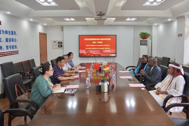 9月6日,喀麦隆非洲计算机学院校长阿班达、技术顾问普利斯卡和合作事务负责人帕特丽夏一行三人访问我校,洽谈合作事宜。党委副书记、校长沈士德在行政楼第一会议室接待了代表团,国际合作与交流处相关工作人员陪同参加洽谈。
